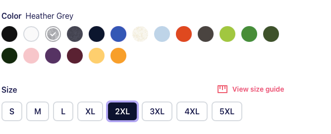 Lighter colors are suggested and not all colors are in every size.